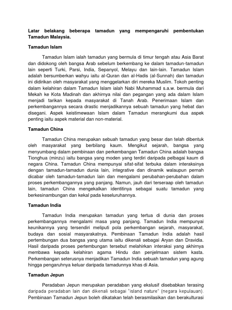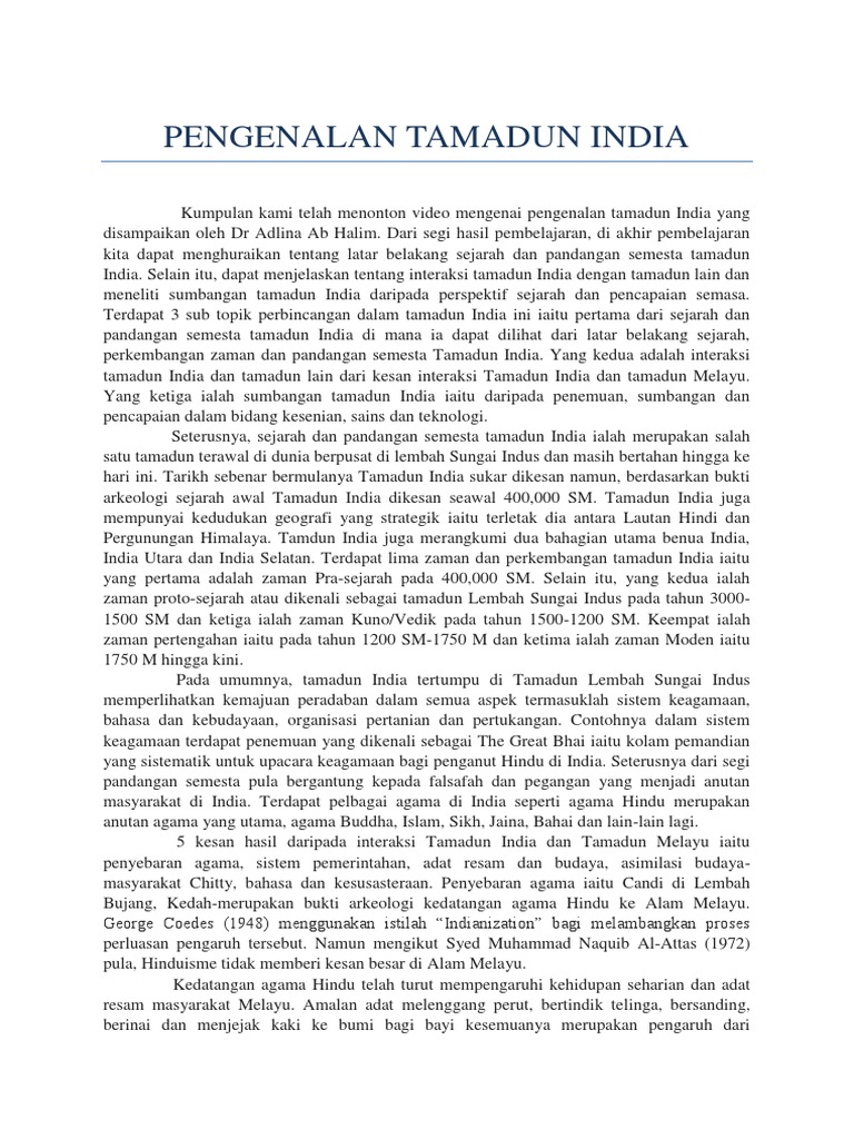 Tamadun islam & tamadun asia (titas)universiti teknologi petronasinteraksi antara tamadun melayu, tamadun india dan tamadun cina analisa pelajar utpmuhammad harith arief farhan ashraf azhar abdul rahman akmaldisediakan olehobjektif kajianuntuk. Sains&teknologi dalam tamadun india kegunaan dalam. 4.6 interaksi tamadun india dengan tamadun lain dan relevansinya di malaysia. Latar belakang yang baik adalah yang disusun dengan sejelas mungkin dan bila perlu disertai dengan data atau fakta yang mendukung. Ia adalah sejarah di mana tanah ditemui, empayar dibina dan diturunkan, peperangan menang dan kalah, perjanjian yang ditandatangani dan dihapuskan, rasa dicari dan ditawarkan, dan bangkit dan jatuh amalan agama dan kepercayaan yang.