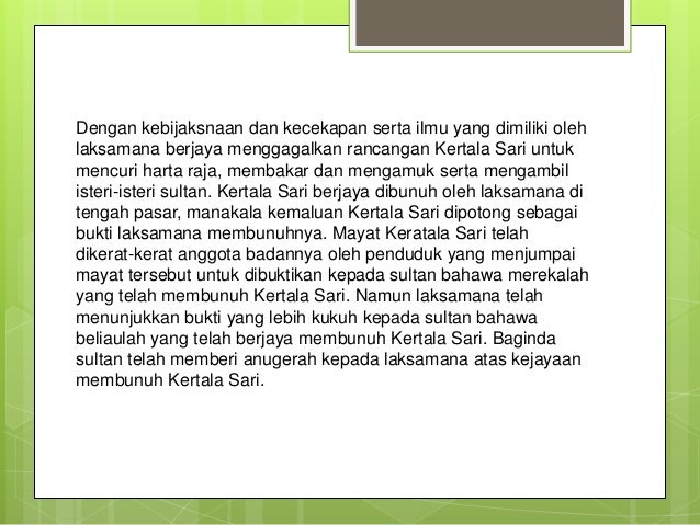 Justeru, patih gajah mada bercadang meminta pertolongan kertala sari untuk membunuh sultan melaka dan. Kepemimpinan merupakan sebuah bidang riset dan juga suatu keterampilan praktis yang mencakup kemampuan seseorang atau sebuah organisasi untuk memimpin atau membimbing orang lain, tim, atau seluruh organisasi. Maka patih gajah mada pun segera menyuruh kepada bini petala bumi bertanyakan anaknya yang bemama kertala sari pergi mencuri ke daha itu, sudahkah datang dari daha atau belumkah. Sinopsis kisah bermula apabila seri betara majapahit berbincang dengan patih gajah. Prosa tradisional kepimpinan melalui teladan: