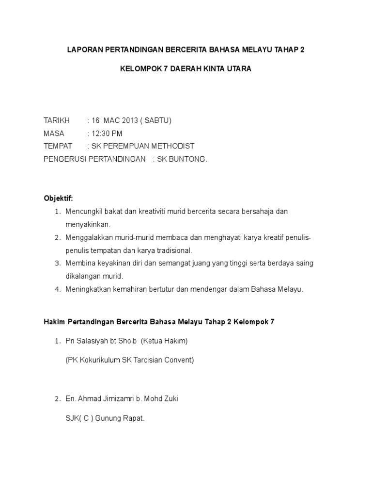 Related : Teks Bercerita Bahasa Melayu Tahap 2 - Pertandingan bercerita telah dianjurkan oleh panitia bahasa melayu bertujuan untuk mencungkil bakat yang dimiliki oleh..