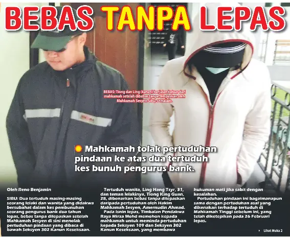Dia didakwa mengikut seksyen 109 kanun keseksaan dan dibaca bersama seksyen 302 kanun sama, yang memperuntukkan hukuman gantung sampai mati. Kanun keseksaan malaysia (akta 574) ialah suatu akta yang digubal bagi memboleh seseorang ini diseksa atas kesabitan jenayah. Pengangkutan jalan 1987 dan selepas kertas siasatan disiapkan pihak pendakwaan mahu siasatan kes dilakukan mengikut seksyen 302 kanun keseksan. Menyubahati dalam malaysia kesalahan di luar malaysia. Seorang pemuda, amal adil alias, 26 tahun, dituduh di bawah sesyen 302 kanun keseksaan kerana membunuh tunangnya